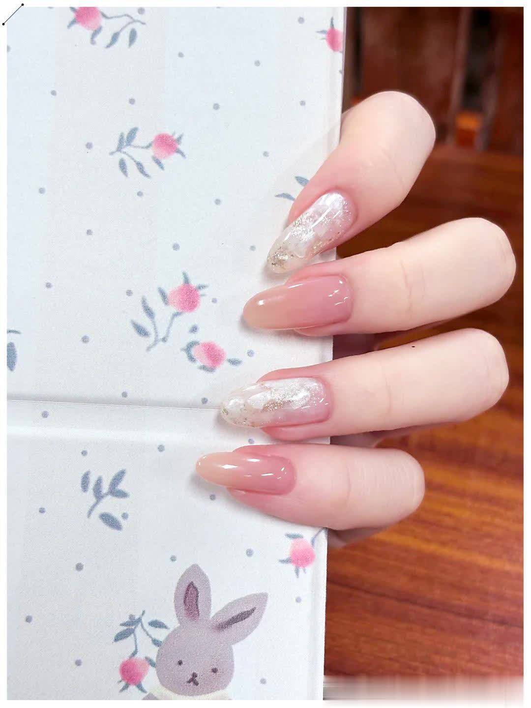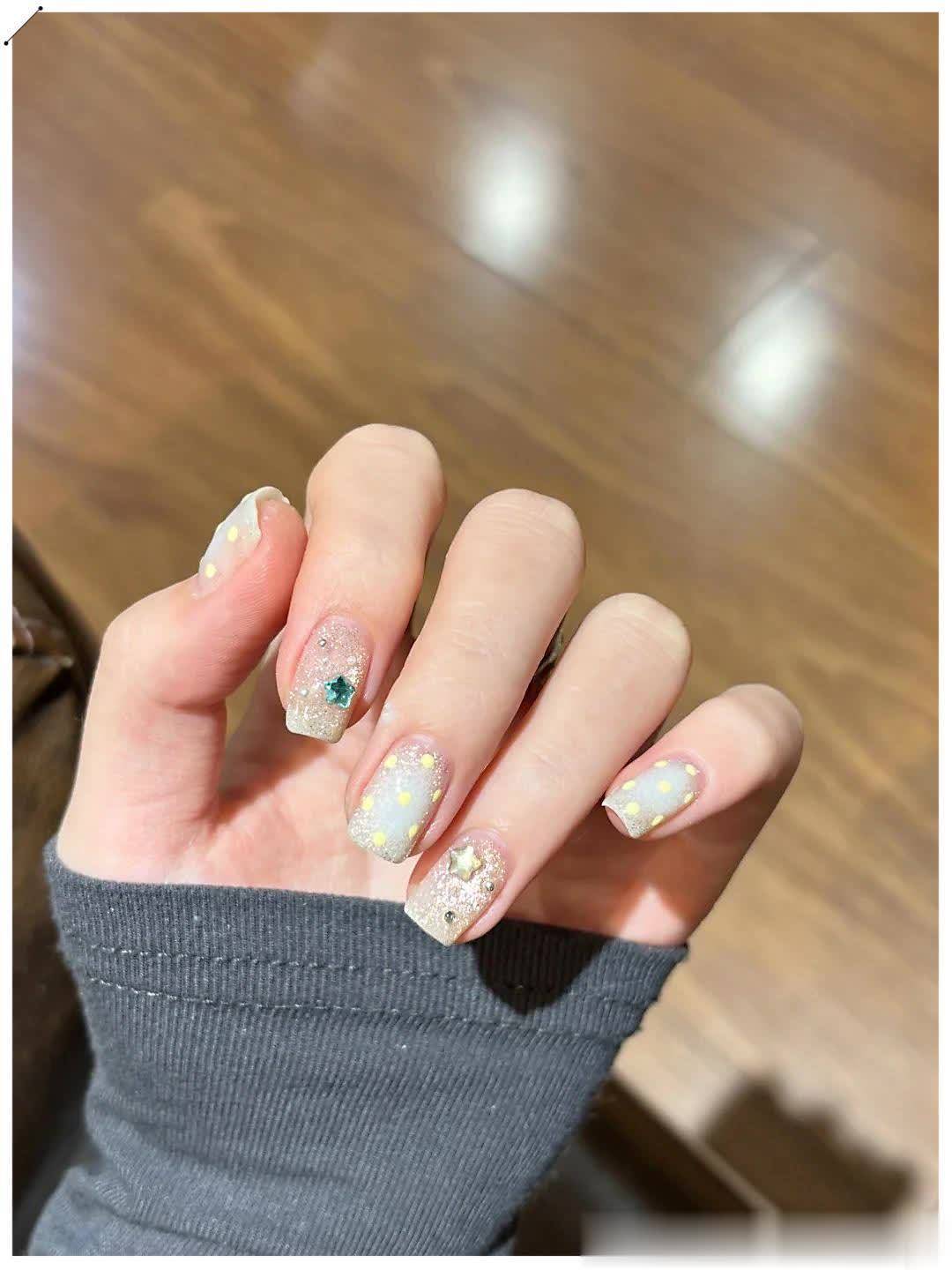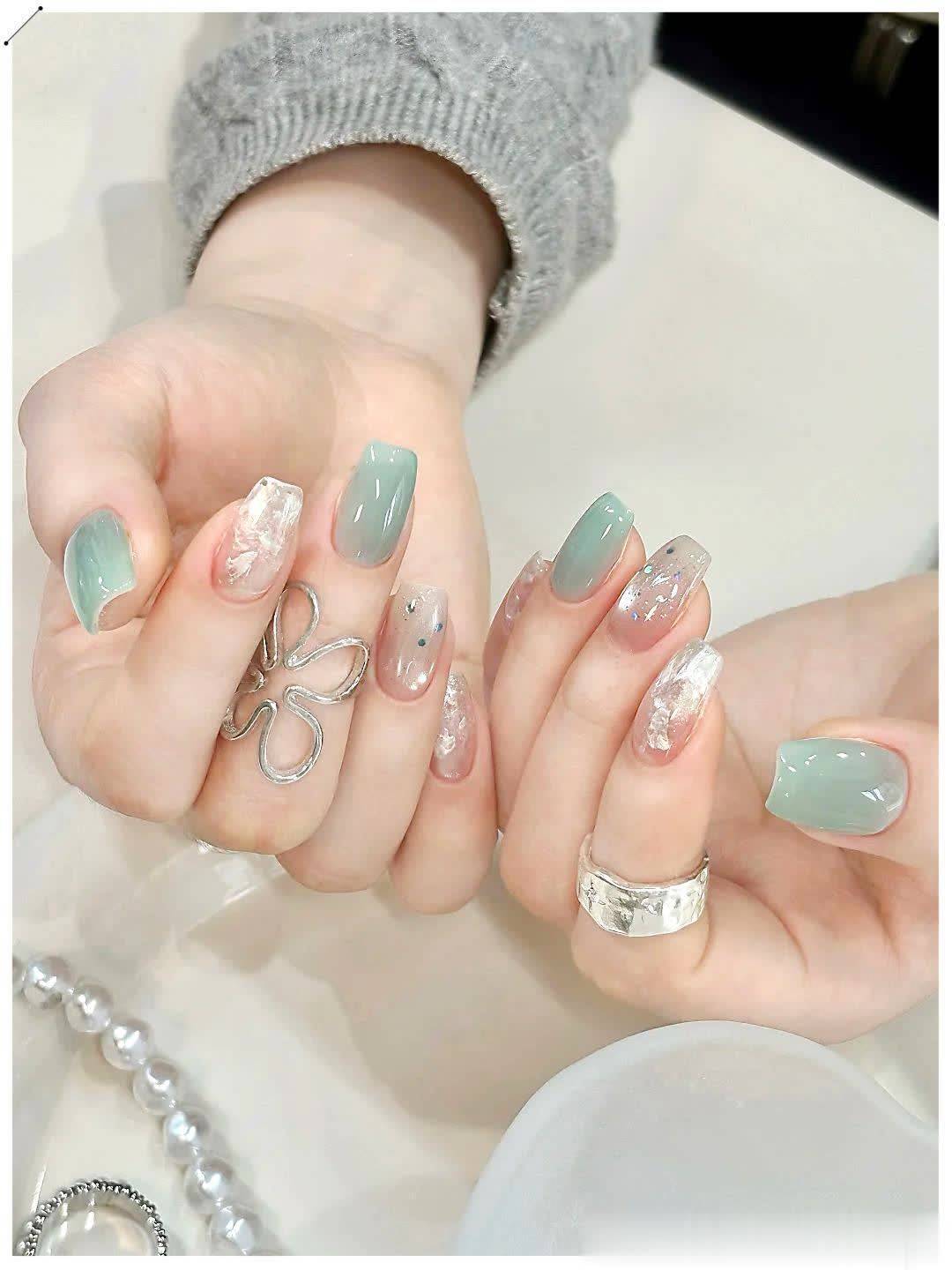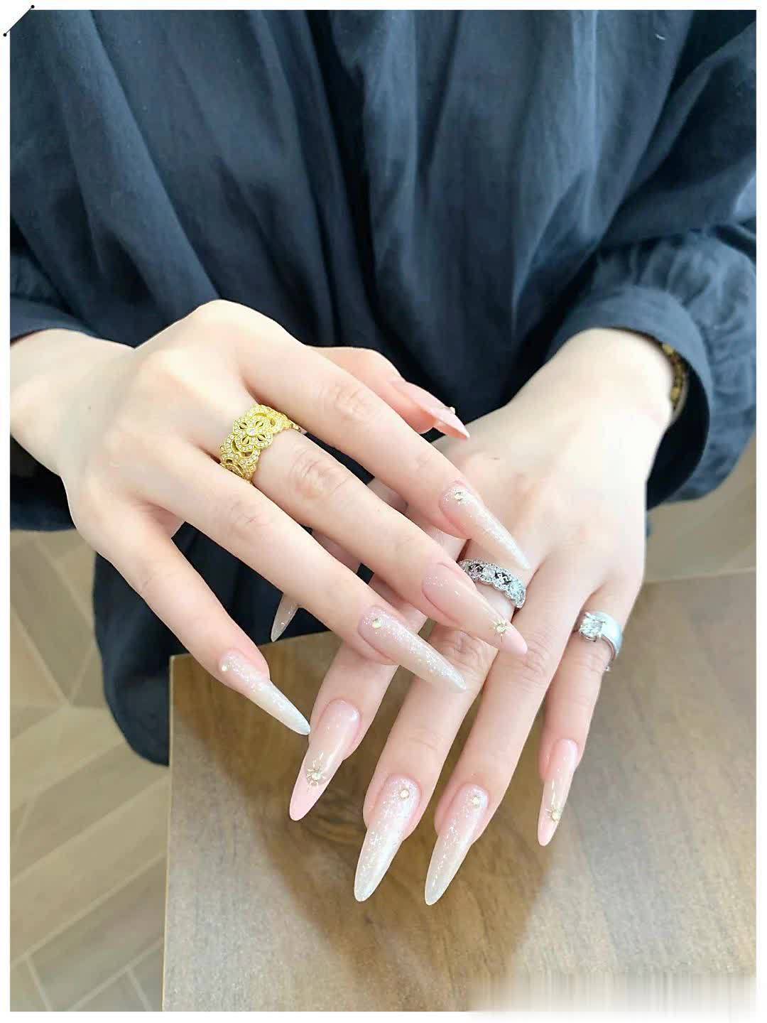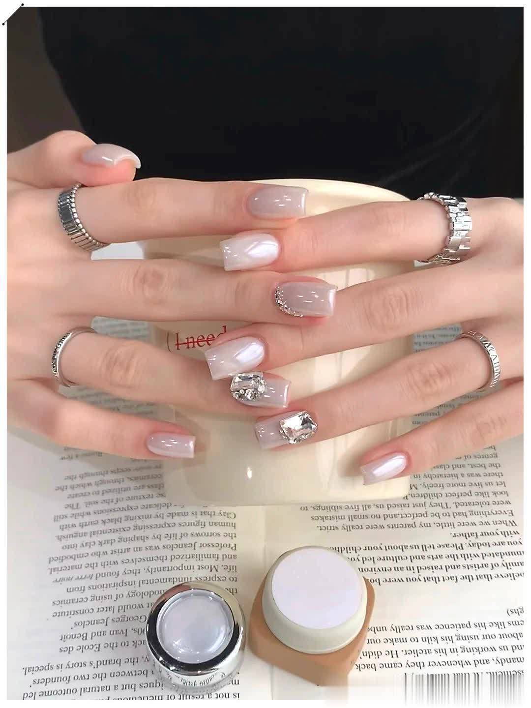 喜欢温柔通勤风,可以选裸色猫眼、细边法式、清透渐变,低调干净,上课上班都合适;想要轻奢千金感,就加一点碎钻、银线、小珍珠或爱心点缀,精致不夸张,拍照巨上镜;偏爱简约高级款,直接冲纯色跳色、单色裸透款,久看不腻,长出来也不尴尬。
